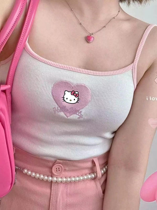 Hello Kitty Silky Spaghetti Straps Nightgown Dresss