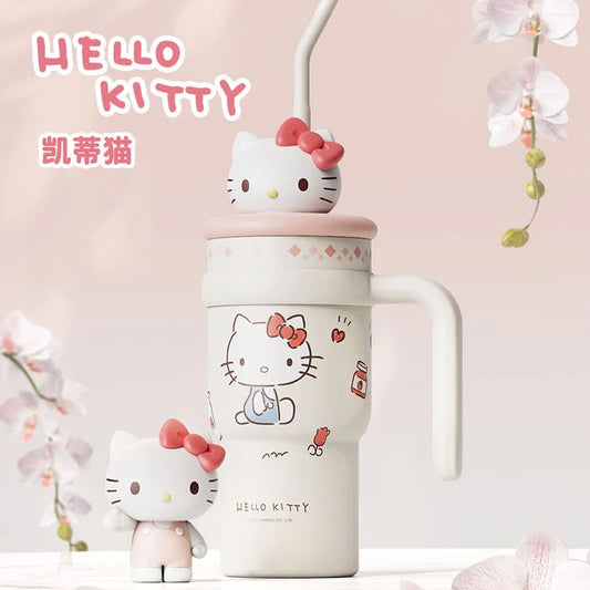 Sanrio Tumbler with Handle Stainless Steel Insulated Cup with Lid & Straw Water Bottle