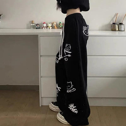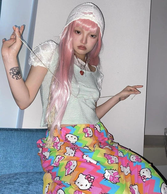 Hello Kitty Vintage Style Wide-Leg Denim Jeans