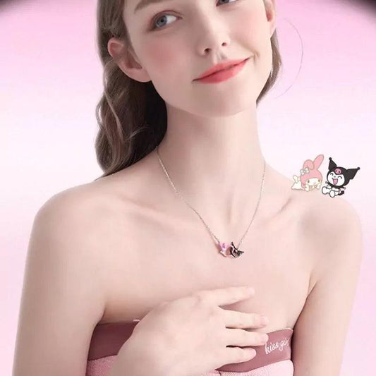 Angel Hello Kitty and Devil Kuromi Heart Necklace
