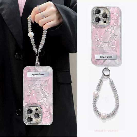 HelloKitty Pink Medal Phone Case with Folding Holder & Phone Charm