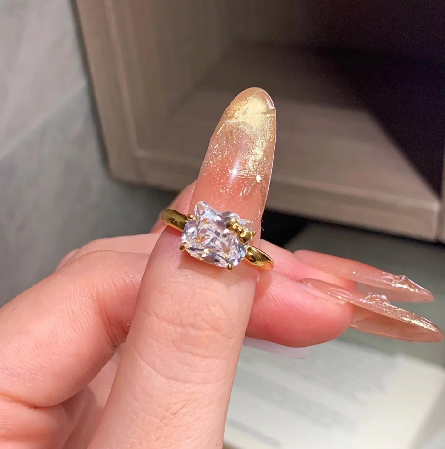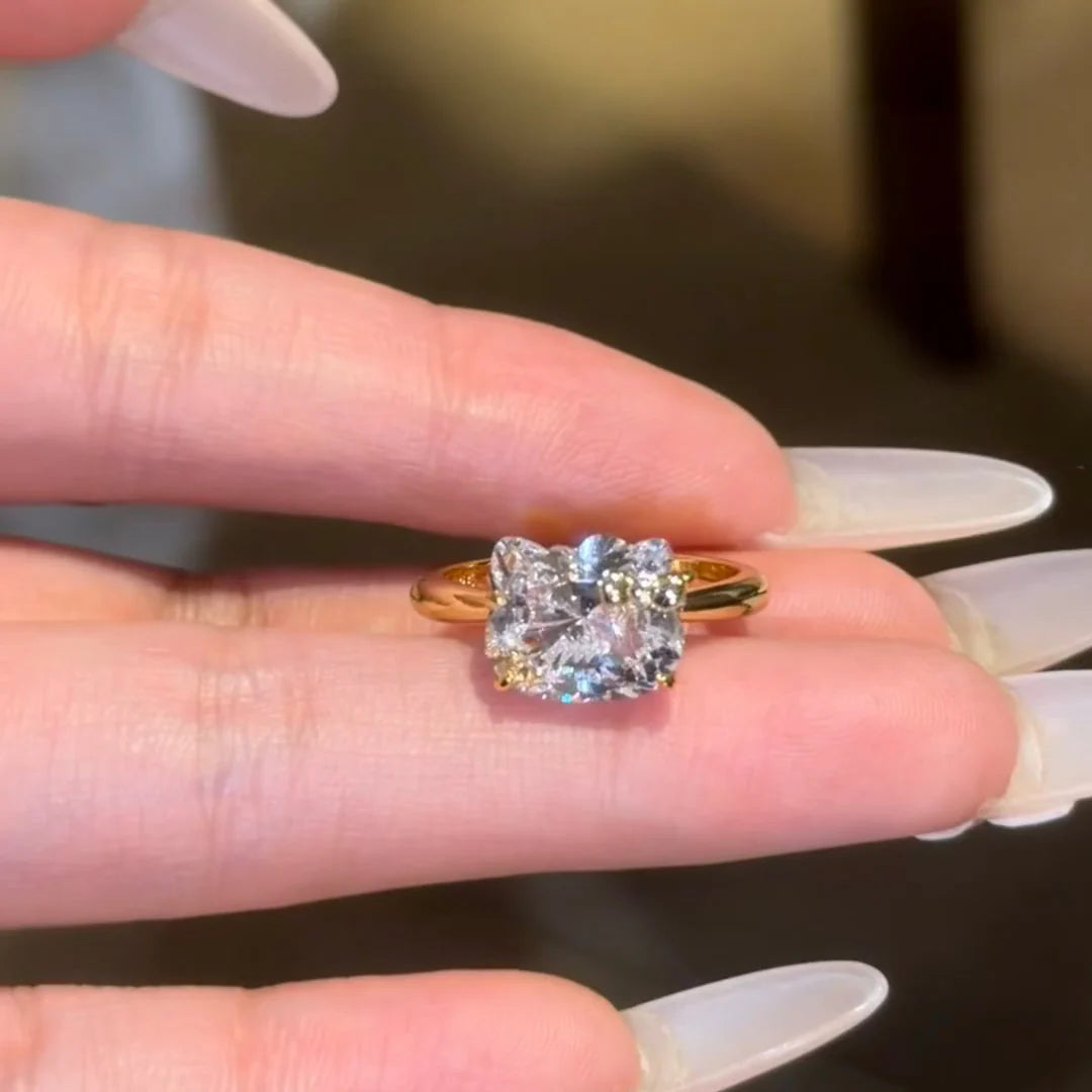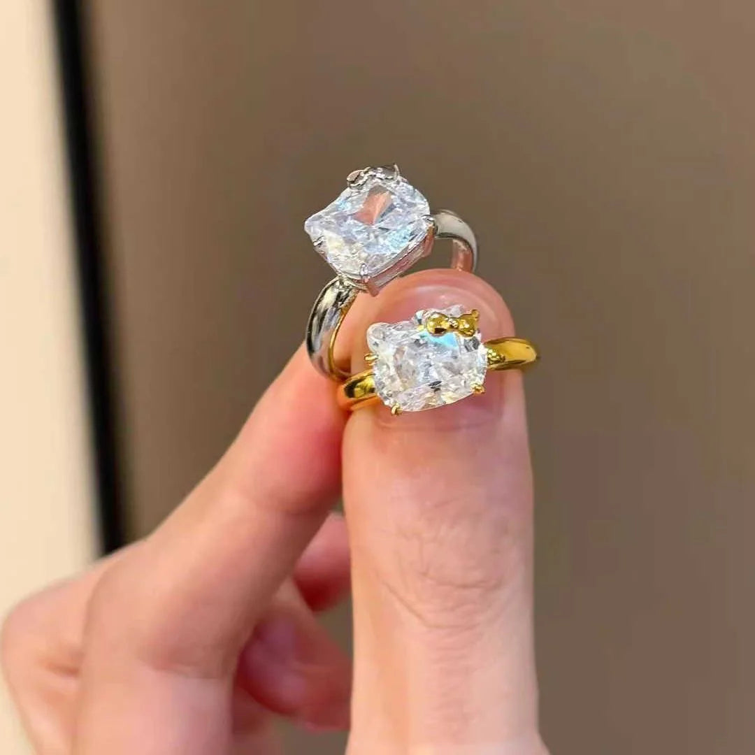 Hellokitty 925 Sterling Silver White Gold Plated Cubic Zirconia Promise Ring