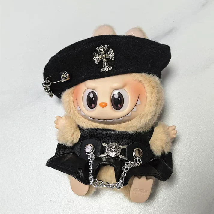 Transform your Labubu into a fashion icon with this gothic-inspired couple outfit set. Designed with edgy black leather and punk-style accessories, these matching looks are perfect for collectors who love bold aesthetics.