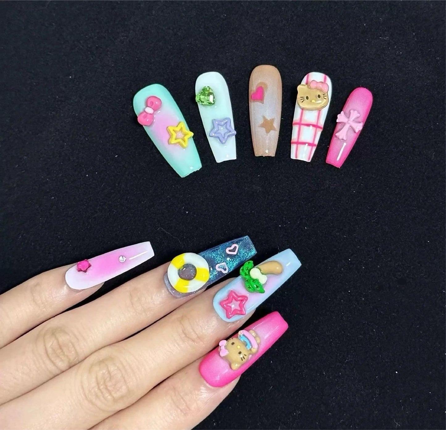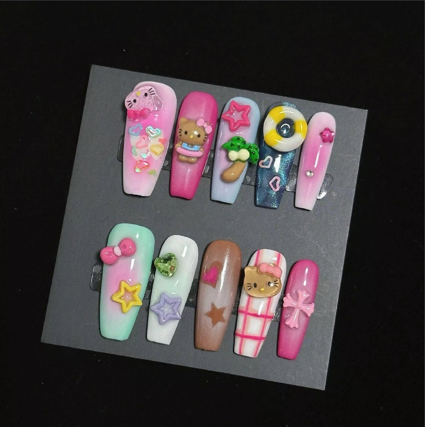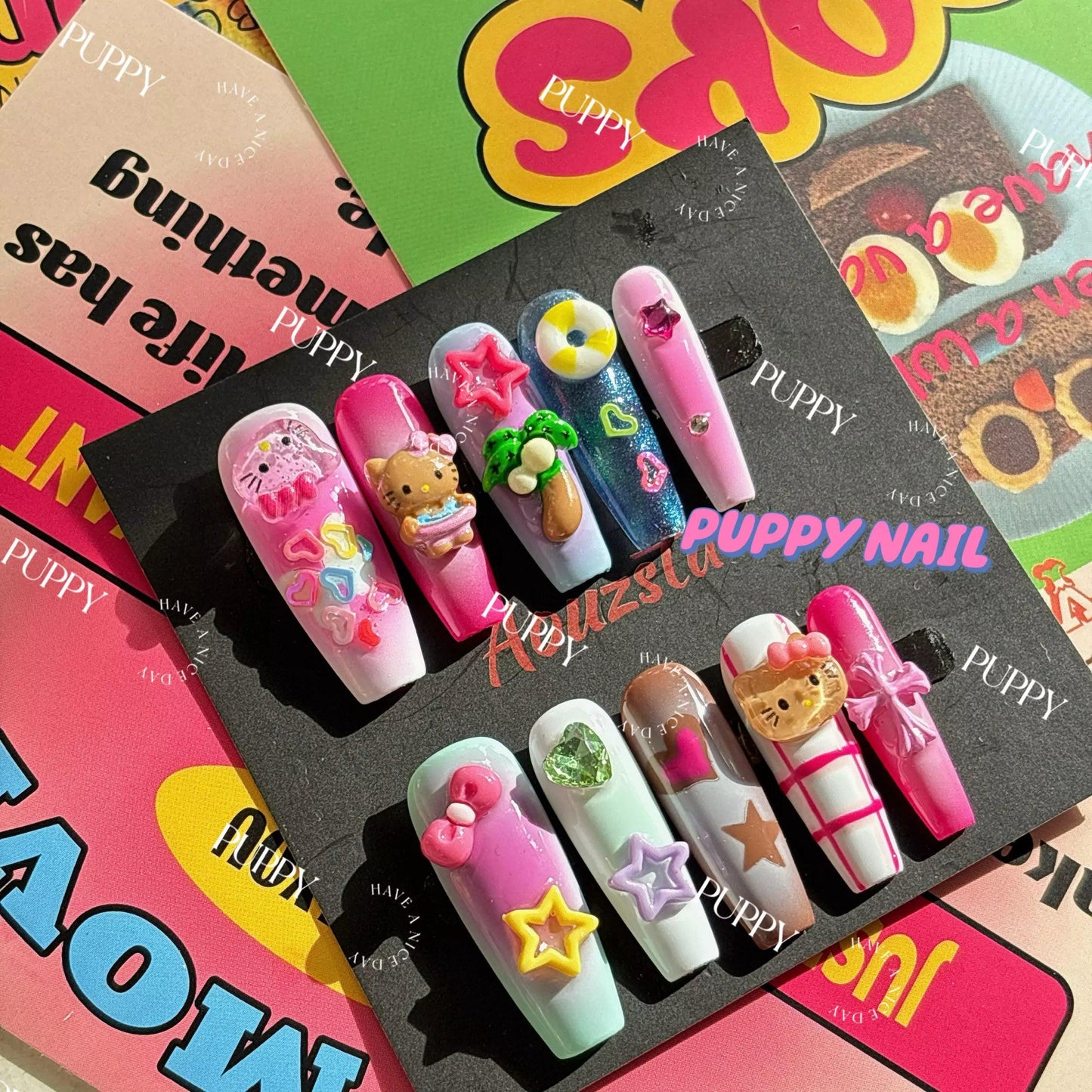 Experience salon-quality nails effortlessly! Our durable, press-on nails offer easy application and showcase your unique style daily. Perfect for the beach or a night out, let your fingertips shine with Hello Kitty's tropical charm!