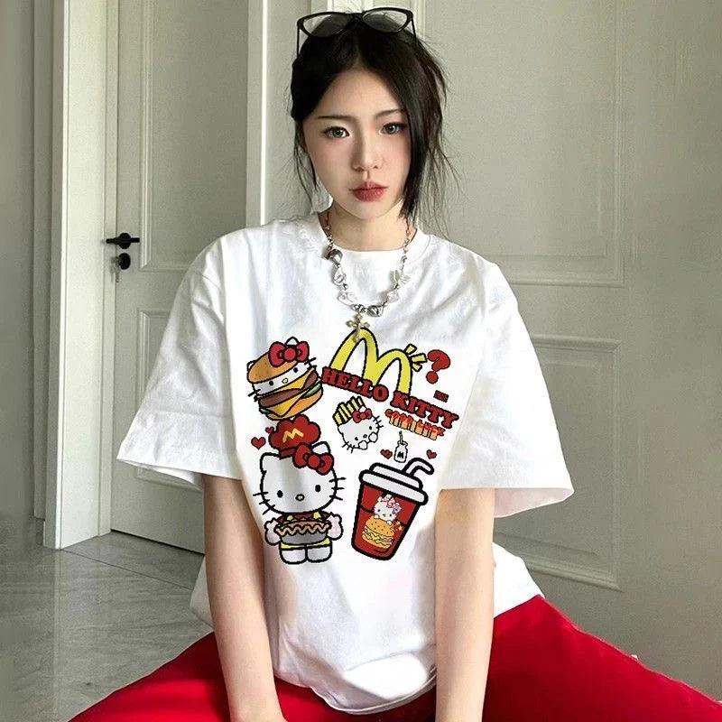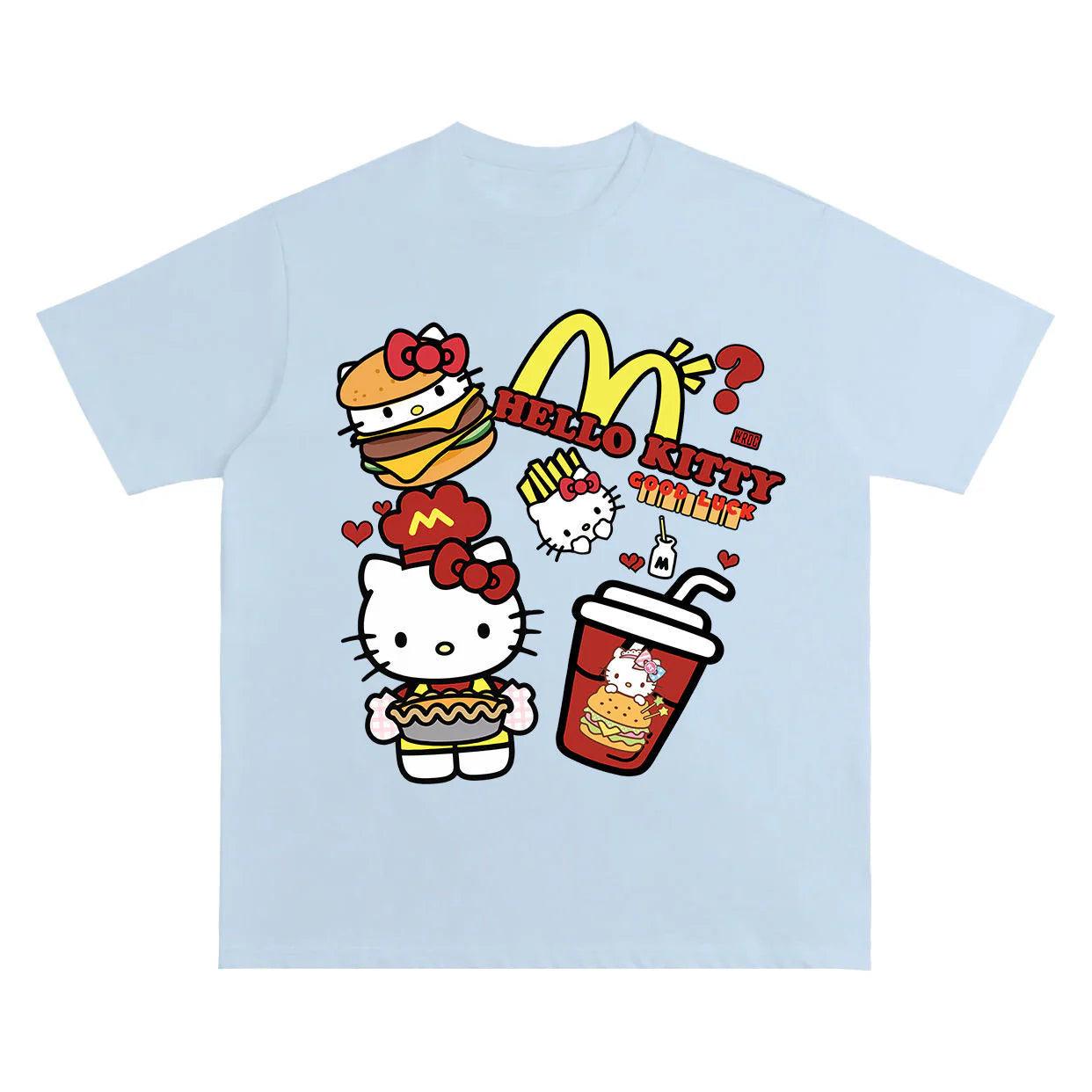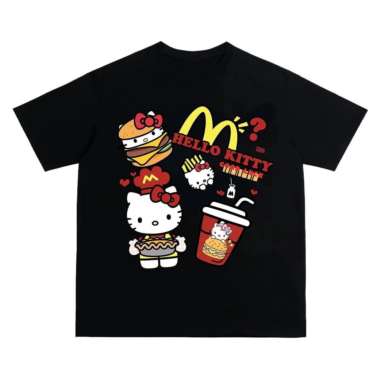 Embrace nostalgia with this playful shirt! Featuring adorable designs inspired by your favorite fast-food joint, it's crafted for comfort and style. Perfect for adding charm to any occasion, let your love for Hello Kitty and McDonald's shine!