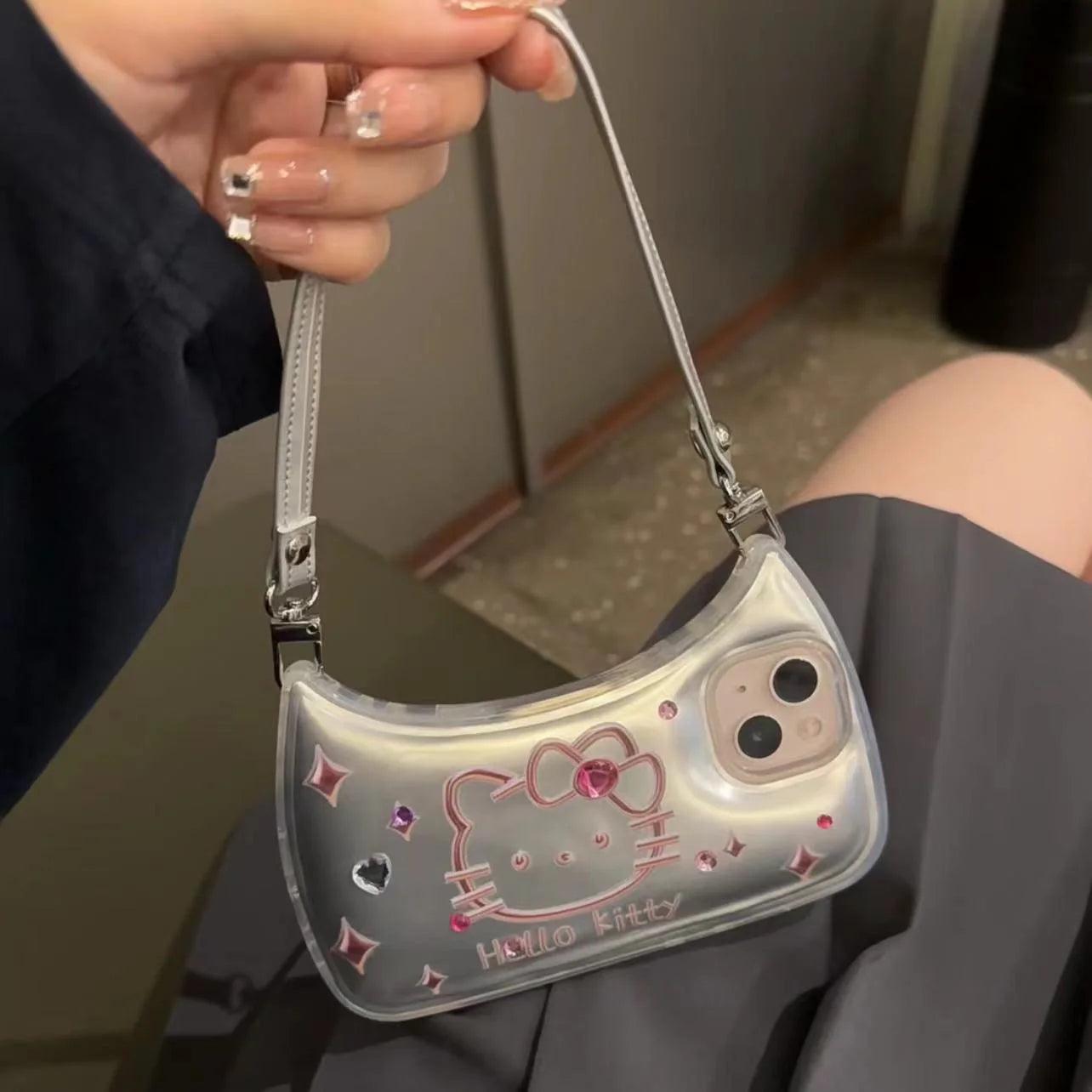 The perfect blend of cuteness and practicality with this Hello Kitty phone case, features her iconic face in a playful mini purse design. Enhanced by a chic bracelet-style strap, it’s both stylish and functional—perfect for carrying essentials with ease. Add a touch of Hello Kitty magic to your everyday look.