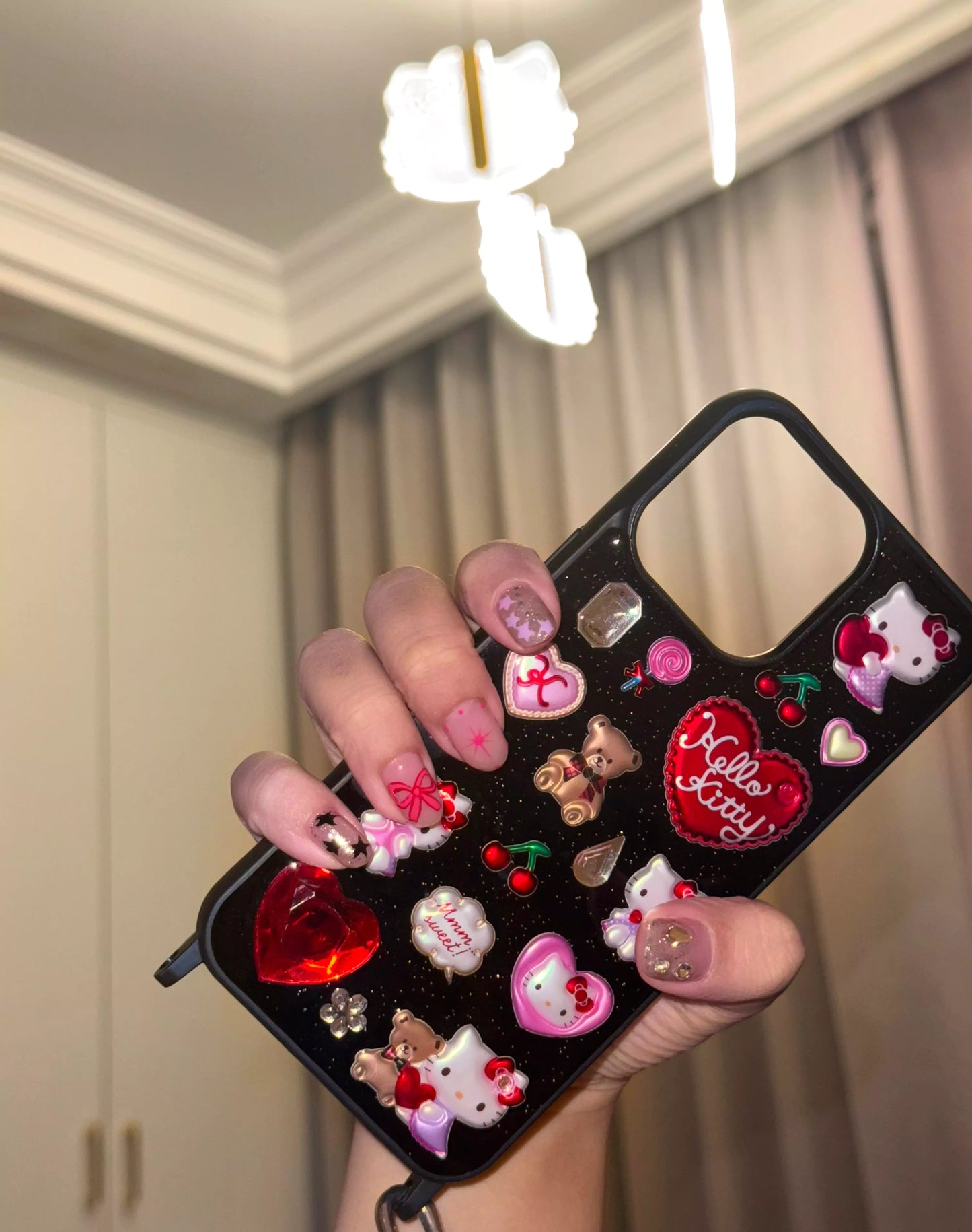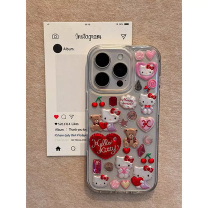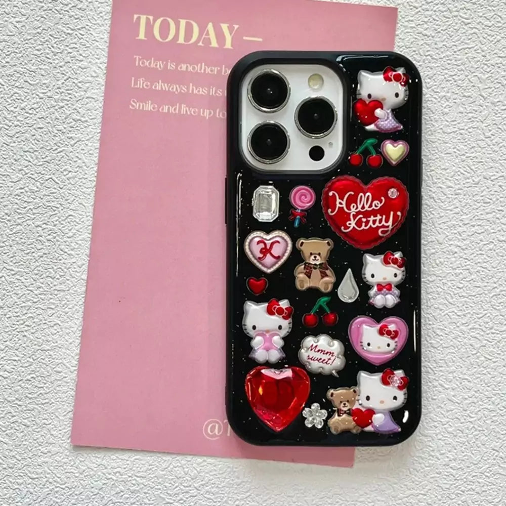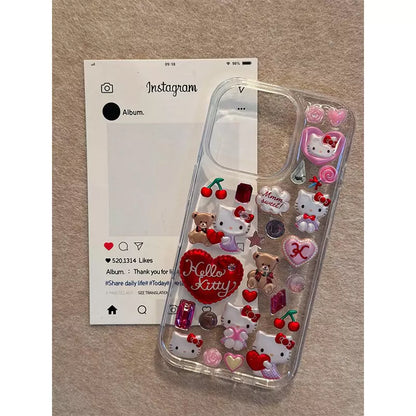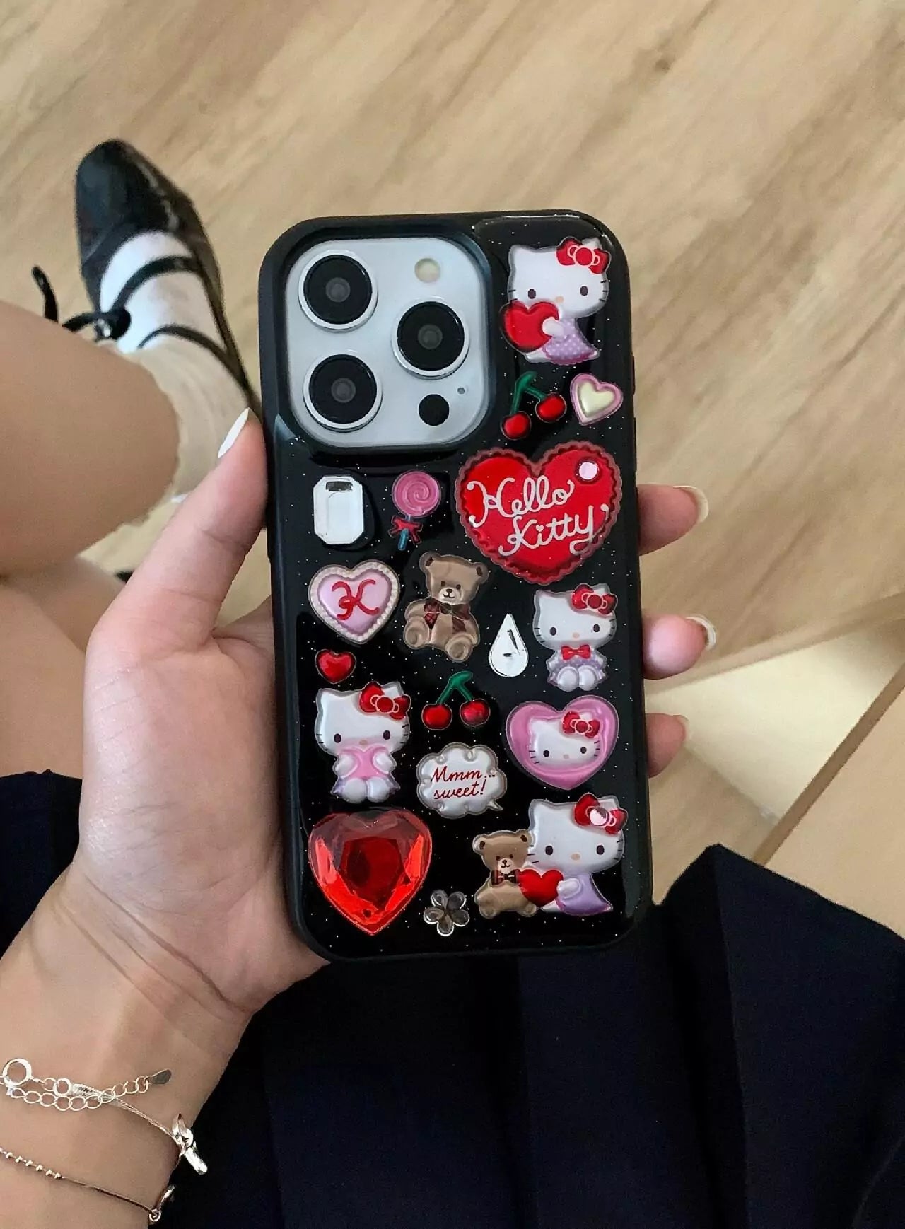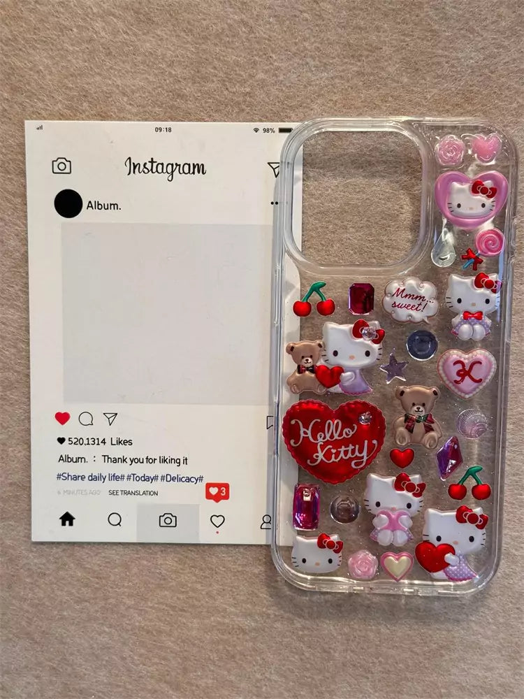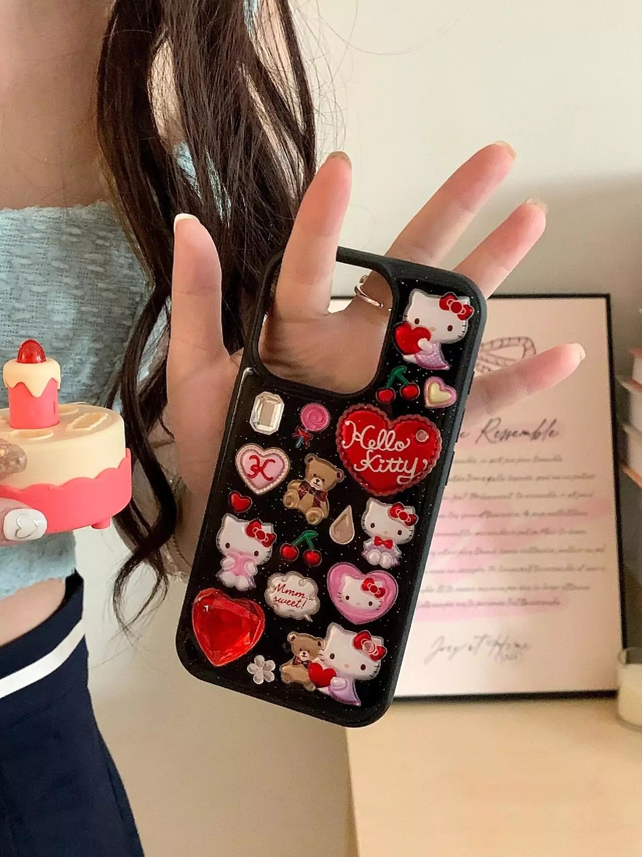Add a touch of charm with the Hello Kitty Handmade Kawaii Sticker Case! Featuring playful, hand-applied Hello Kitty stickers, this case brings unique, adorable flair while keeping your phone protected in style.