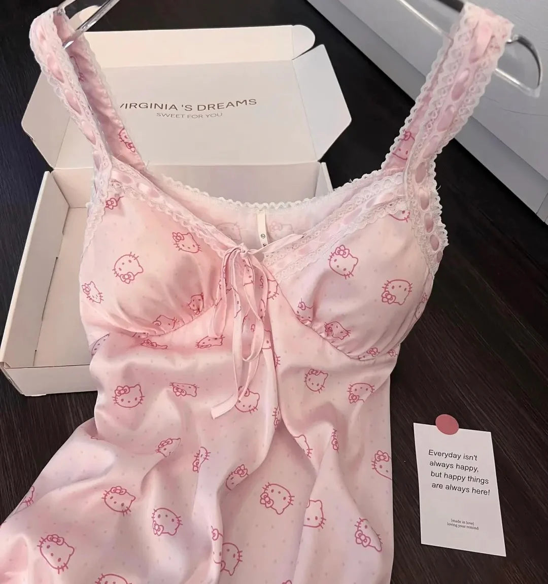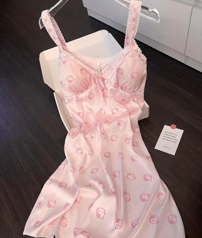 HelloKitty Pink Lace Silken Whisper Camisole Dress