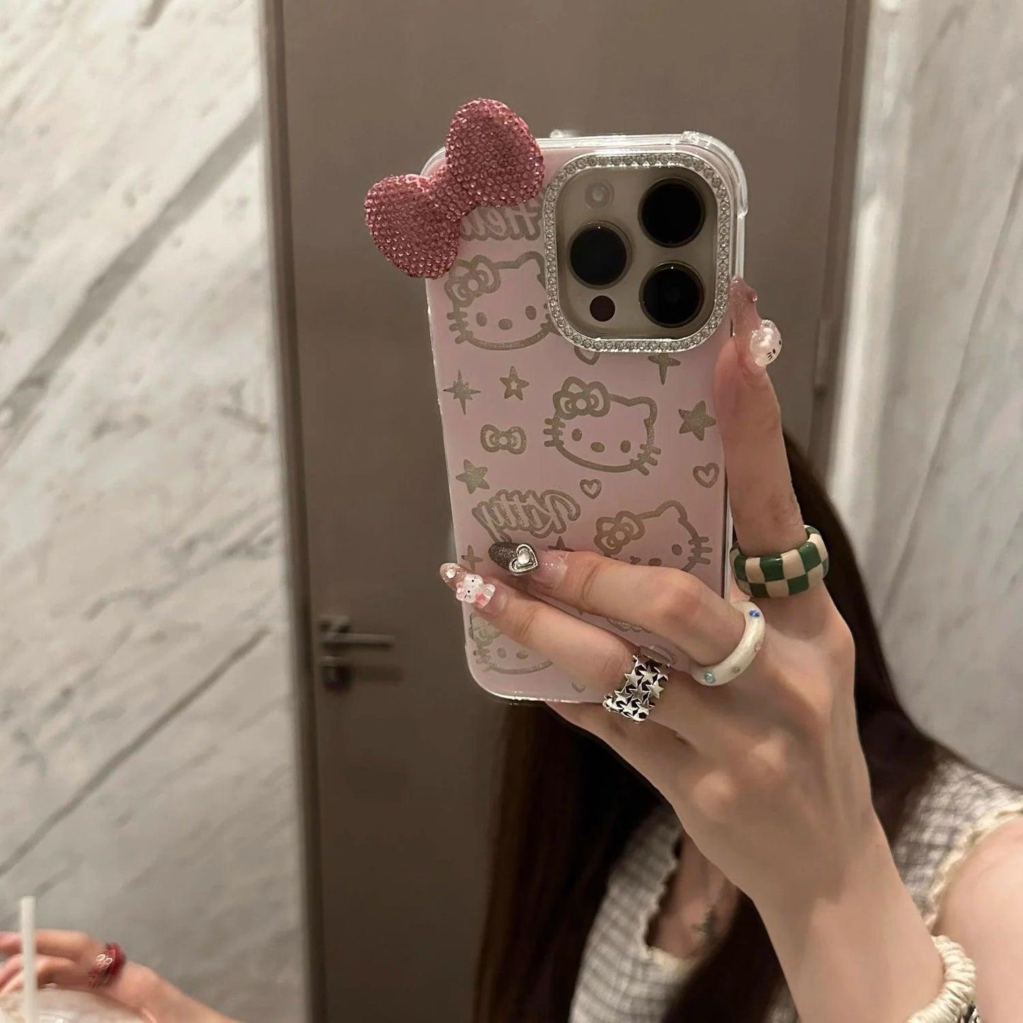 Add sparkle to your phone with our Hello Kitty Rhinestone Phone Case. Adorned with dazzling rhinestones, this case blends Hello Kitty's iconic design with a glamorous twist. Durable and protective, it guards against scratches and drops while offering easy access to all ports. Perfect for Hello Kitty fans, this stylish accessory makes your phone stand out with a unique, sparkling look.