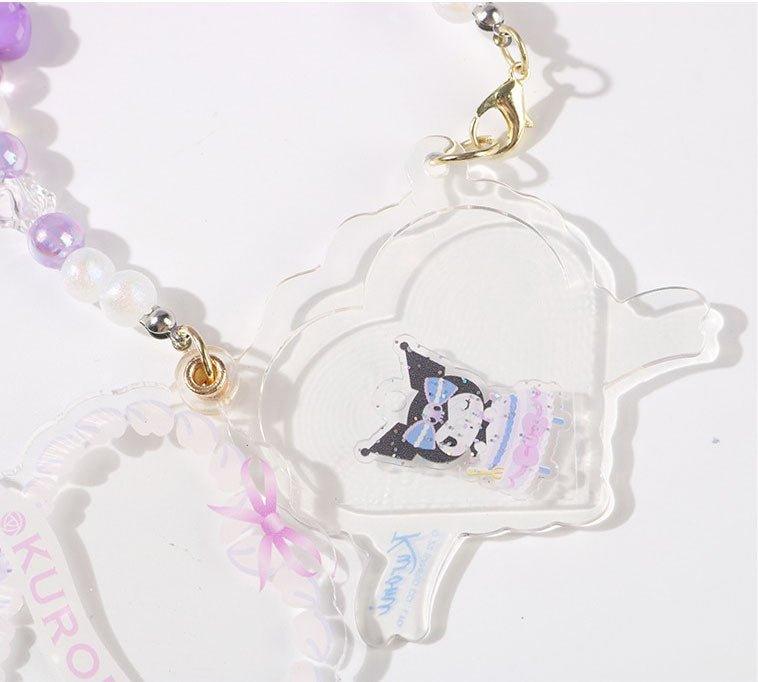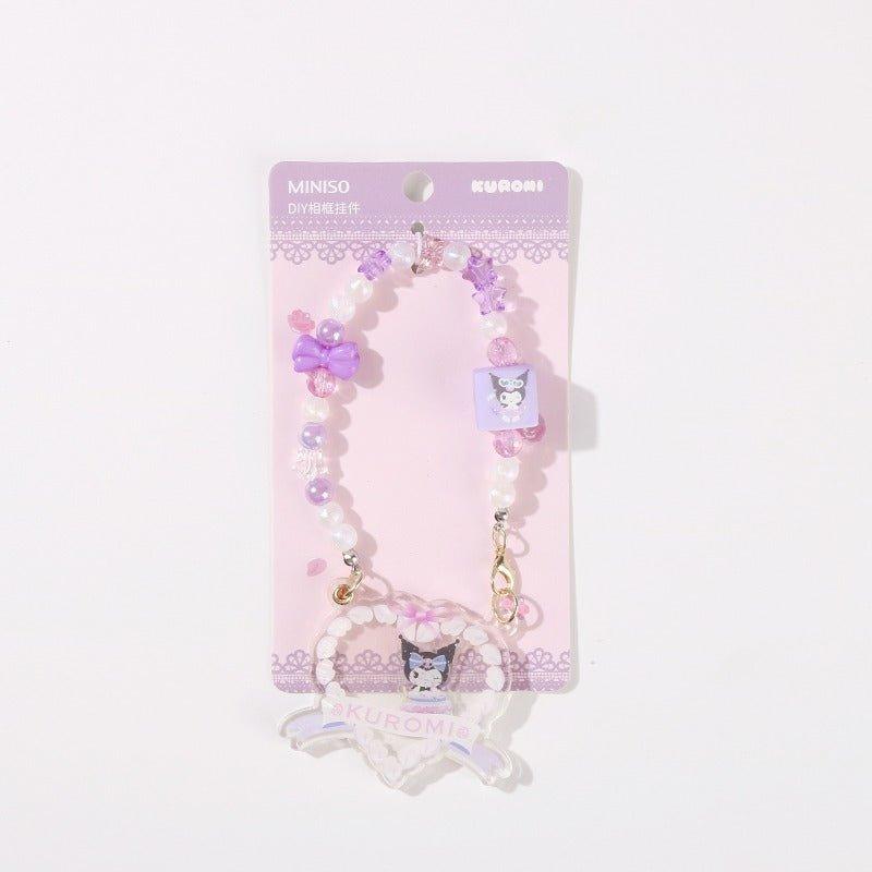 This delightful piece allows you to personalize your style with a cherished photo, surrounded by eye-catching beads and the iconic Kuromi charm. A perfect addition to your accessories that keeps memories close at hand.