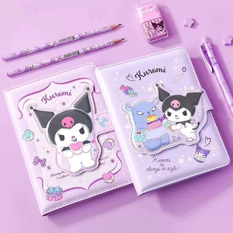Get charmed by Kuromi with this adorable magnetic clasp notebook. Compact and vibrant, it keeps your notes organized for on-the-go adventures. A must-have for any Kuromi fan!