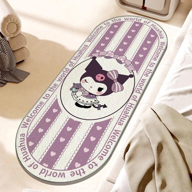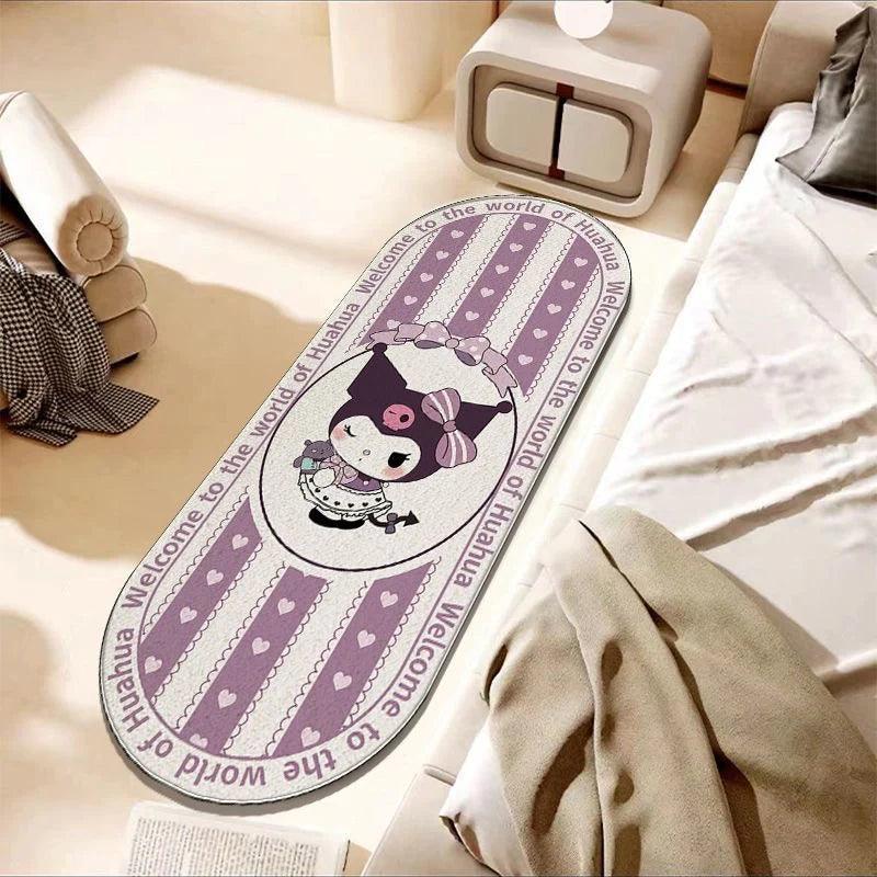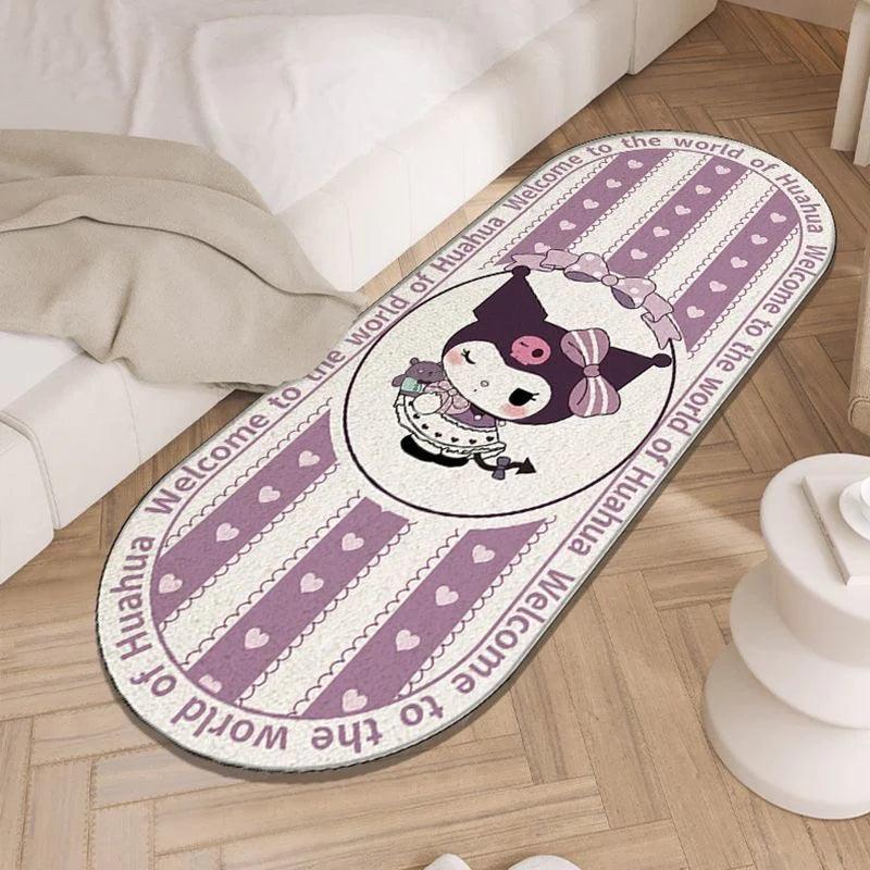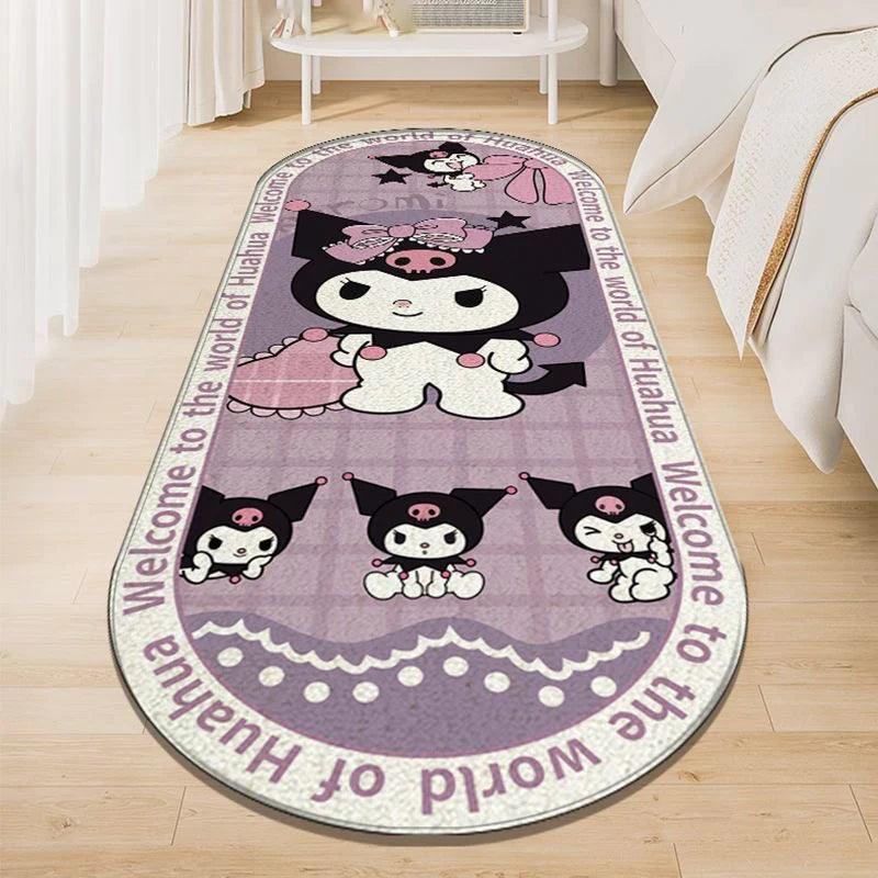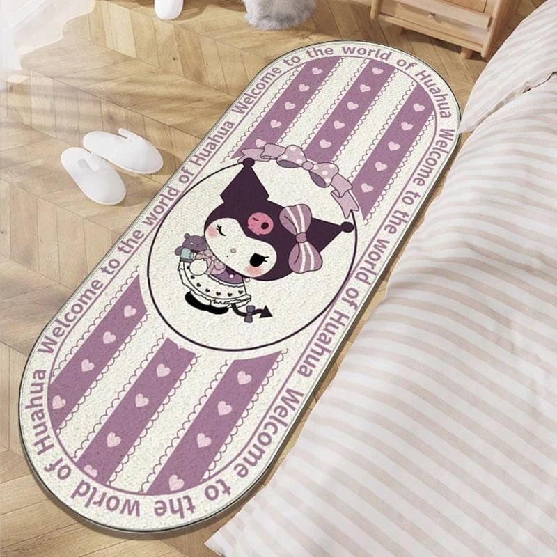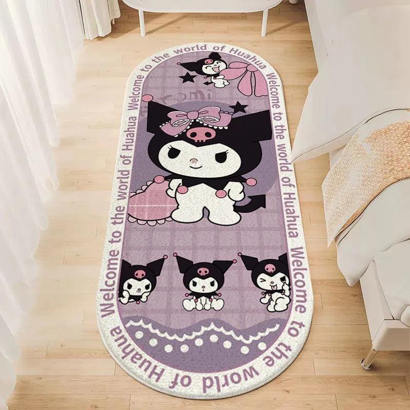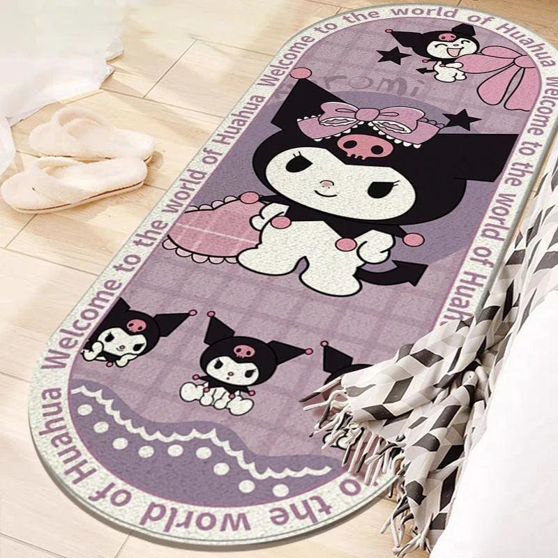 Add a vibrant touch to your space with our soft Kuromi Carpet. Featuring a sponge interlayer and extremely soft fabric, this rug provides both comfort and warmth. It's versatile and can be used as a double-sided blanket, making it a functional addition to your home. Ideal for various indoor settings, including bedrooms, living rooms, playrooms, and more, it's easy to install, use, and clean. The simple, cute Kuromi design is perfect for children's rooms and makes for a great Christmas or holiday gift. Brighten up your space with this charming and beneficial addition.