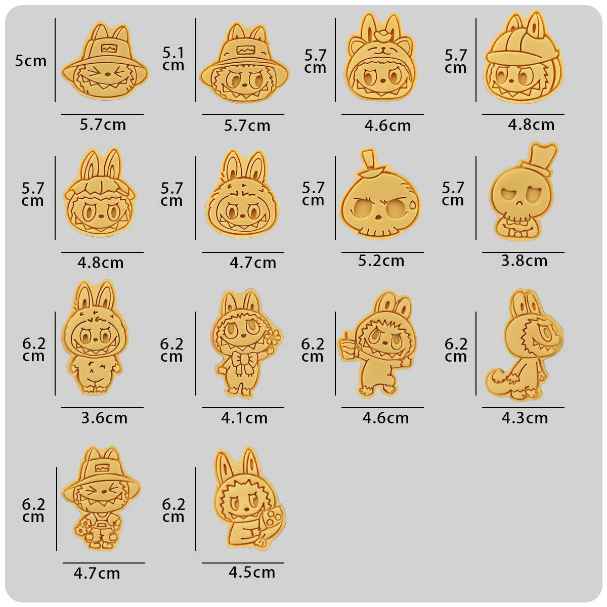 Create adorable treats with the LABUBU 3D Cookie Mold Set! Made from durable PP material, this set includes 14 molds—each with a unique style—perfect for fun, detailed baking.