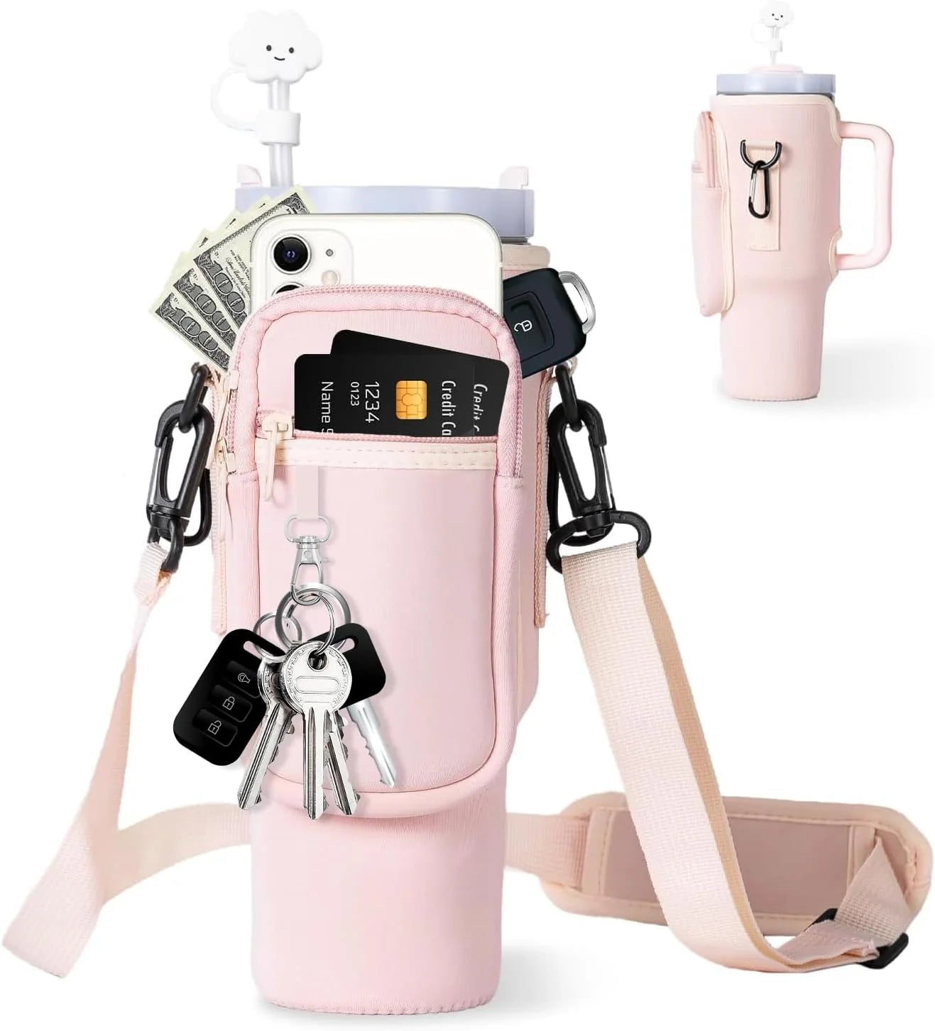 This versatile water bottle carrier is the perfect accessory for your tumbler. It's designed to fit popular brands like Stanley, Simple Modern, and Hydro Flask.