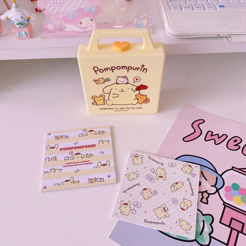 Stay organized and add a touch of cuteness to your desk with the Memo Pad with Case, featuring adorable Sanrio characters and a convenient storage container for your notes.