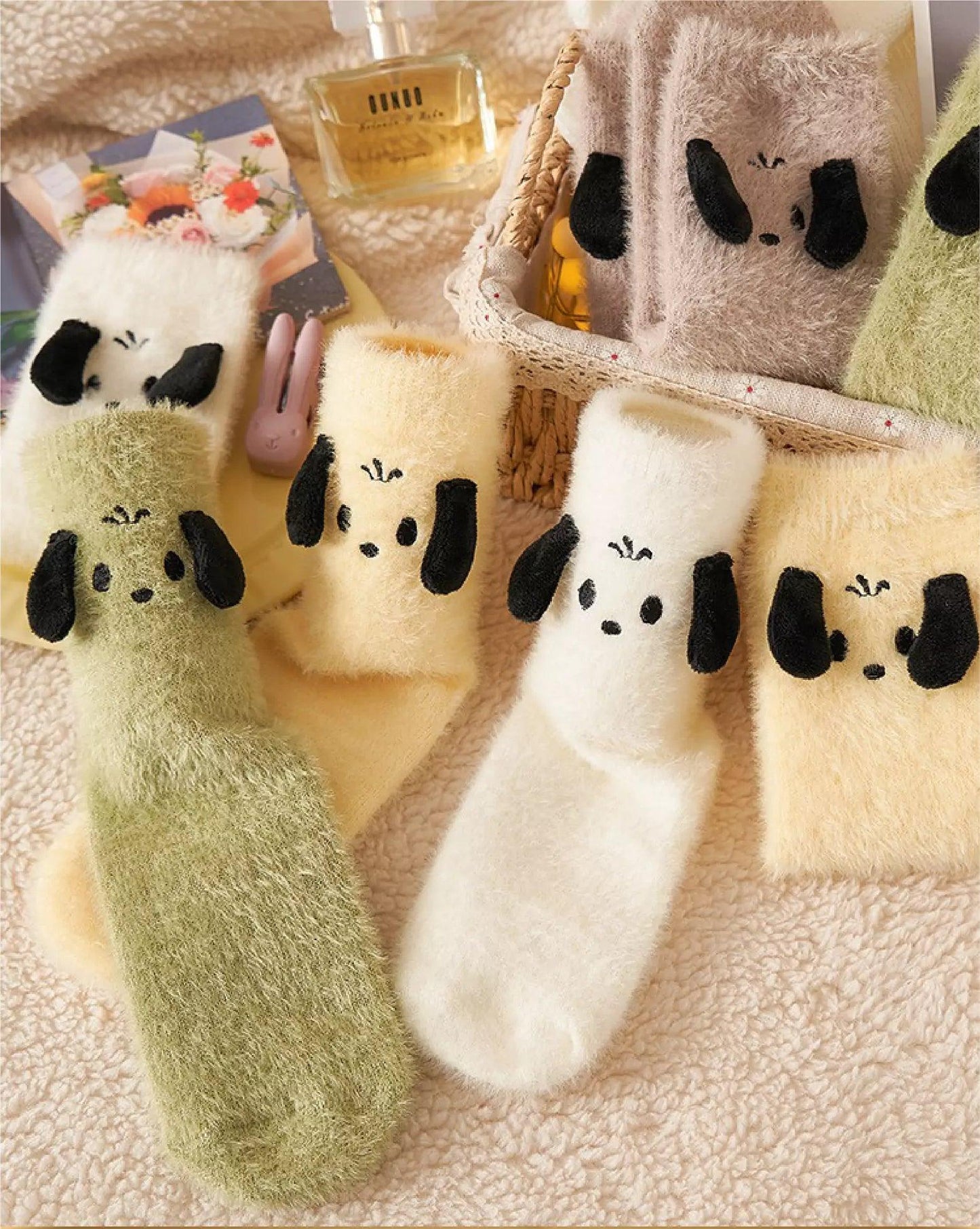 Step into comfort with our 5-piece pack of Pochacco Fleece Socks, featuring cozy, colorful designs. Perfect for lounging or adding a playful touch to your outfit, these socks bring warmth and cheer with every step. Treat your feet to the softness of fleece and the charm of Pochacco.