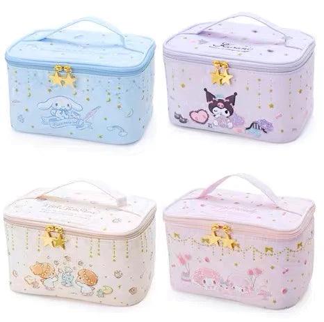 Upgrade your makeup routine with the Sanrio Characters Starry Make Up Pouch, featuring beloved characters on a starry background for a touch of cuteness. Perfect for your makeup essentials.