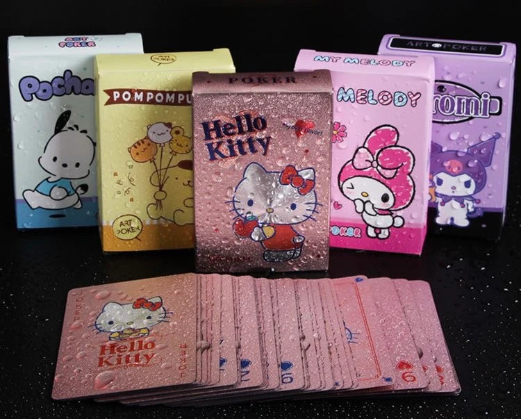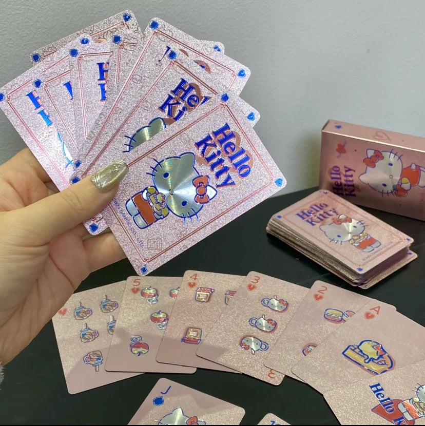 Level up game night with these premium Hello Kitty playing cards. Featuring gold foil details and chic illustrations, they're waterproof, scratch-resistant, and easy to clean—perfect for poolside or party play!