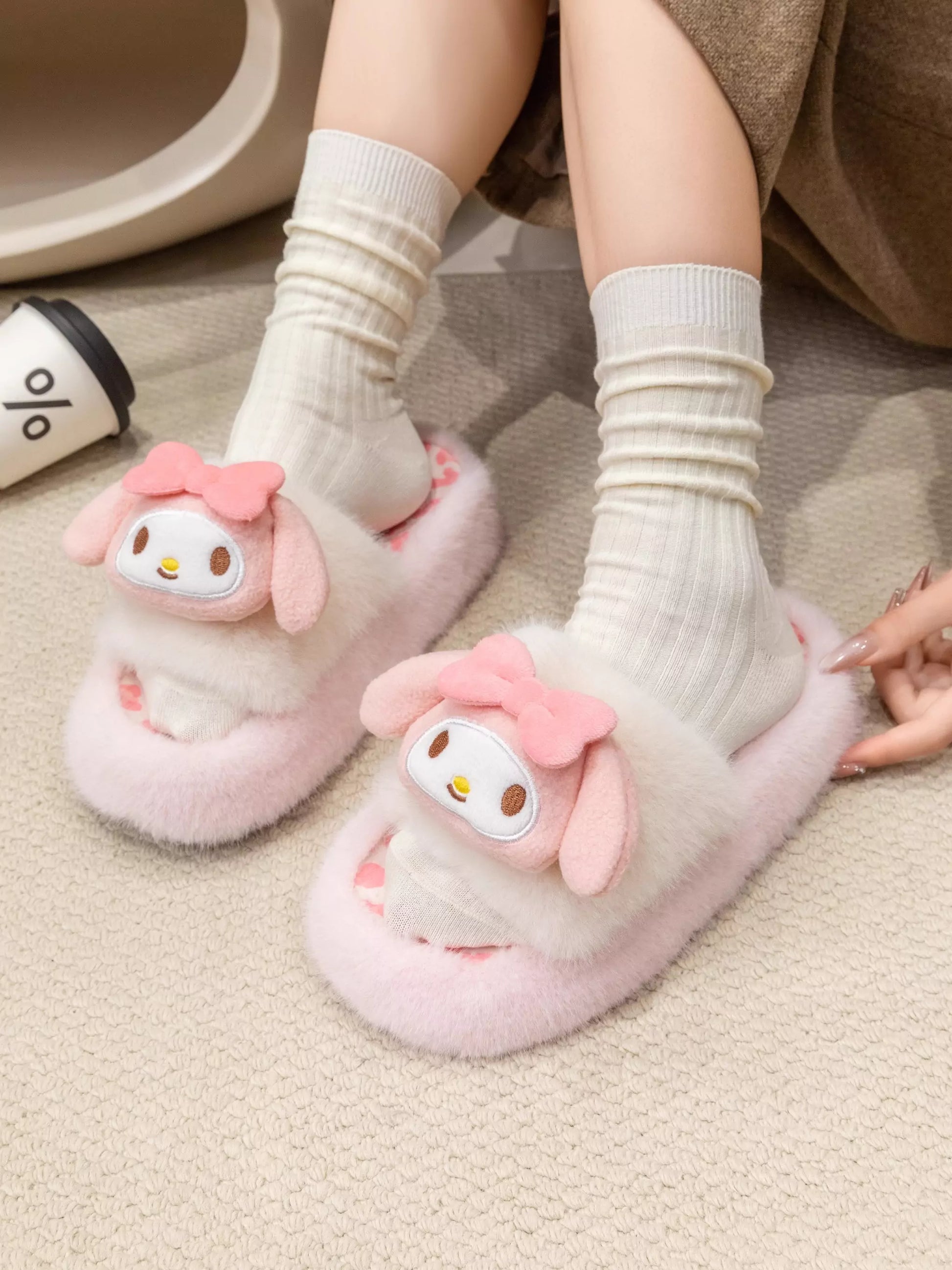 Stay warm and stylish with these adorable Sanrio plush slippers! Featuring beloved characters like Hello Kitty, My Melody, and Kuromi, each pair is designed with soft faux fur, playful leopard prints, and cushioned comfort. Perfect for lounging at home while adding a touch of cuteness to your daily routine.