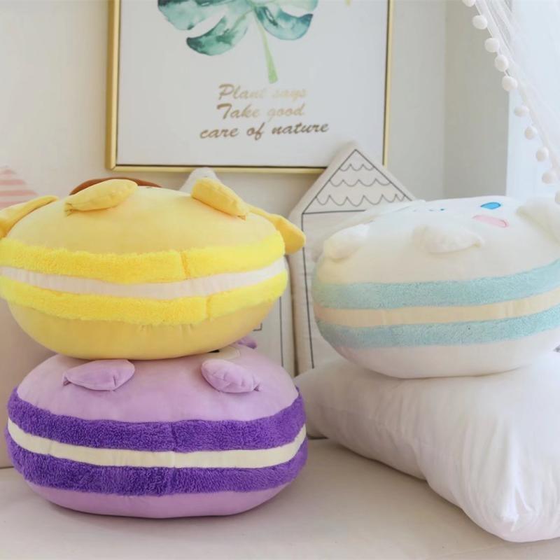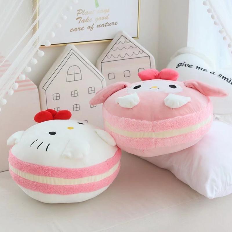 Indulge in adorable comfort with our Sanrio Macaron Shaped Plush Pillows featuring Hello Kitty, Kuromi, Cinnamoroll, and My Melody. These delightful and huggable pillows add a touch of cuteness to any space, making them perfect for both kids and adults. With their charming macaron design and iconic Sanrio characters, they are a must-have for fans of all ages.