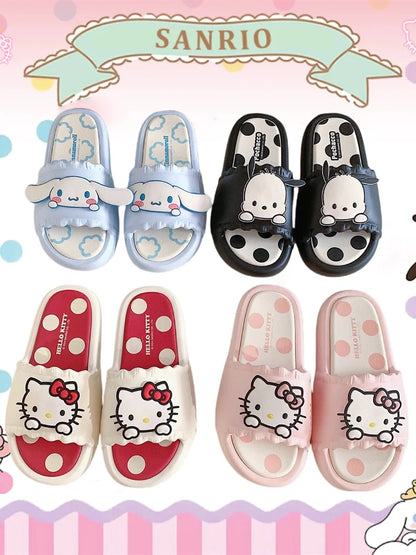 Step into cuteness with these Sanrio Polka Dot Ruffle Soft Sole Sandals! Featuring a playful dot print, sweet wave-edge design, and ultra-soft soles for all-day comfort—perfect for adding a charming touch to any outfit.