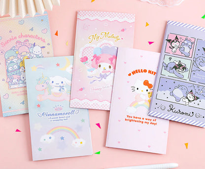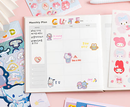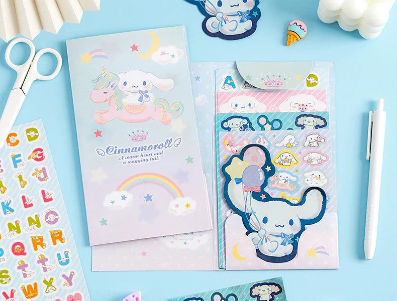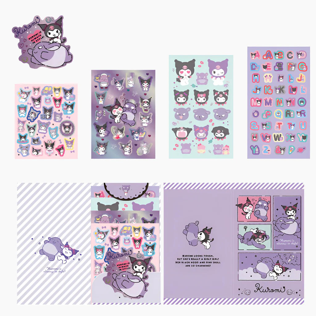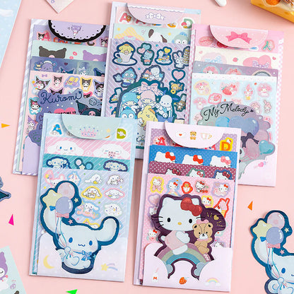 This adorable folder-style set includes 8 sticker sheets featuring Sanrio characters, letter designs, and a large foil-accented sticker. Choose from 4 character themes or collect them all. Perfect for decorating journals, gifts, and adding a touch of kawaii to your crafts.