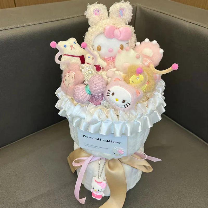 Celebrate Valentine’s Day with the charming Sanrio Valentine’s Day Plush Bouquet! This unique gift combines the romance of flowers with the cuteness of Sanrio characters. The bouquet features soft plush toys, including Hello Kitty and other beloved Sanrio friends, nestled among vibrant silk flowers. Each plush is crafted with attention to detail, ensuring a soft, huggable texture. Elegantly arranged, this bouquet is a perfect symbol of affection and playful romance. Show your love this Valentine’s Day with a gift that’s as memorable as it is delightful.