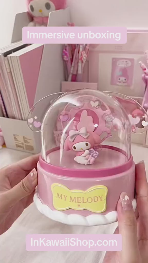 This delightful product combines the charm of a whimsical Ferris wheel with the joy of a music box, creating a unique and enchanting experience for all Sanrio fans. Simply click the button to activate the soft glow of the wishing lamp and let the sweet melodies fill the air. A perfect gift to add a touch of wonder to any space.